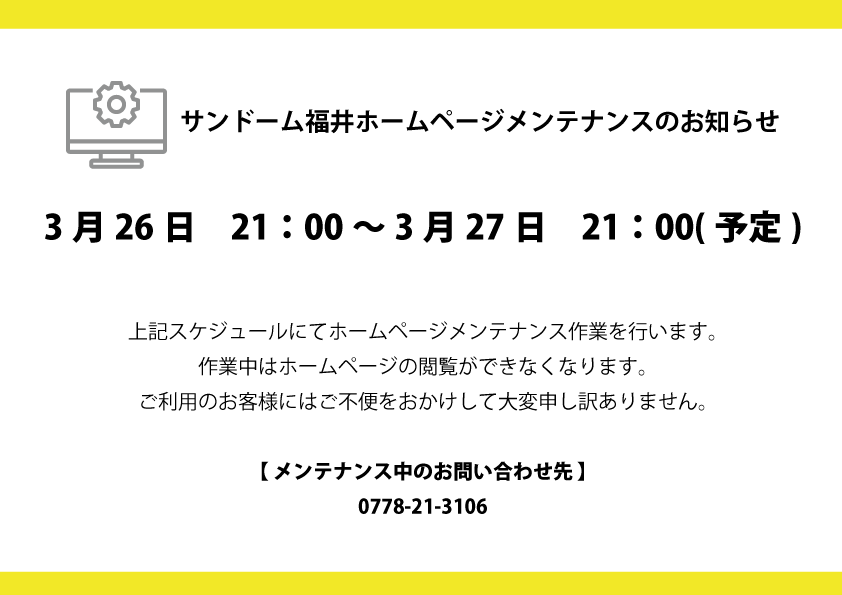 サンドーム福井ホームページメンテナンスのお知らせ