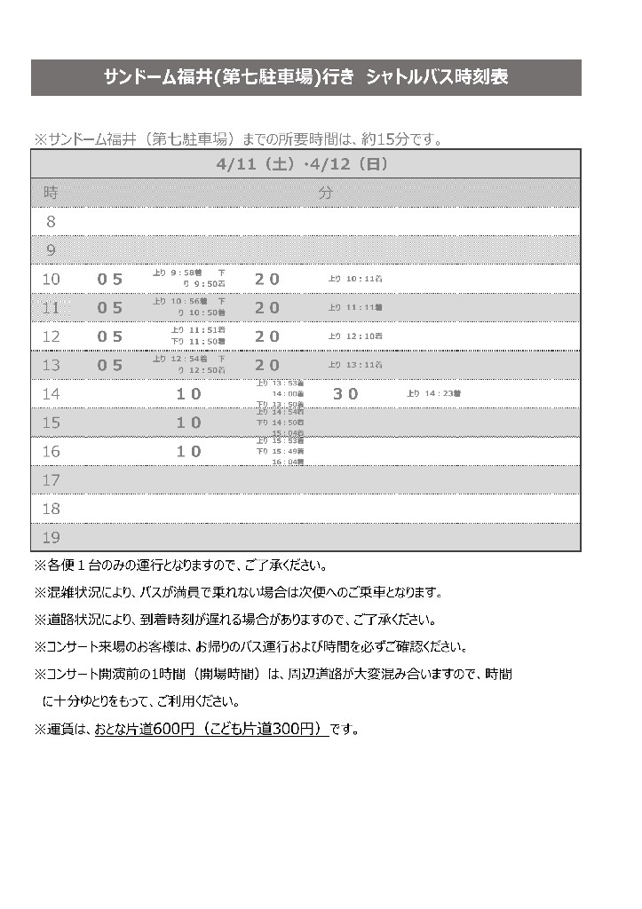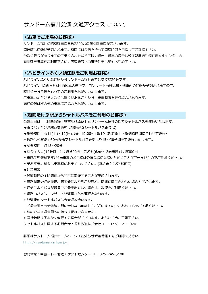 令和8年4月11日(土)、12日(日)サンドーム福井公演の交通アクセスについては、以下のとおりです。
